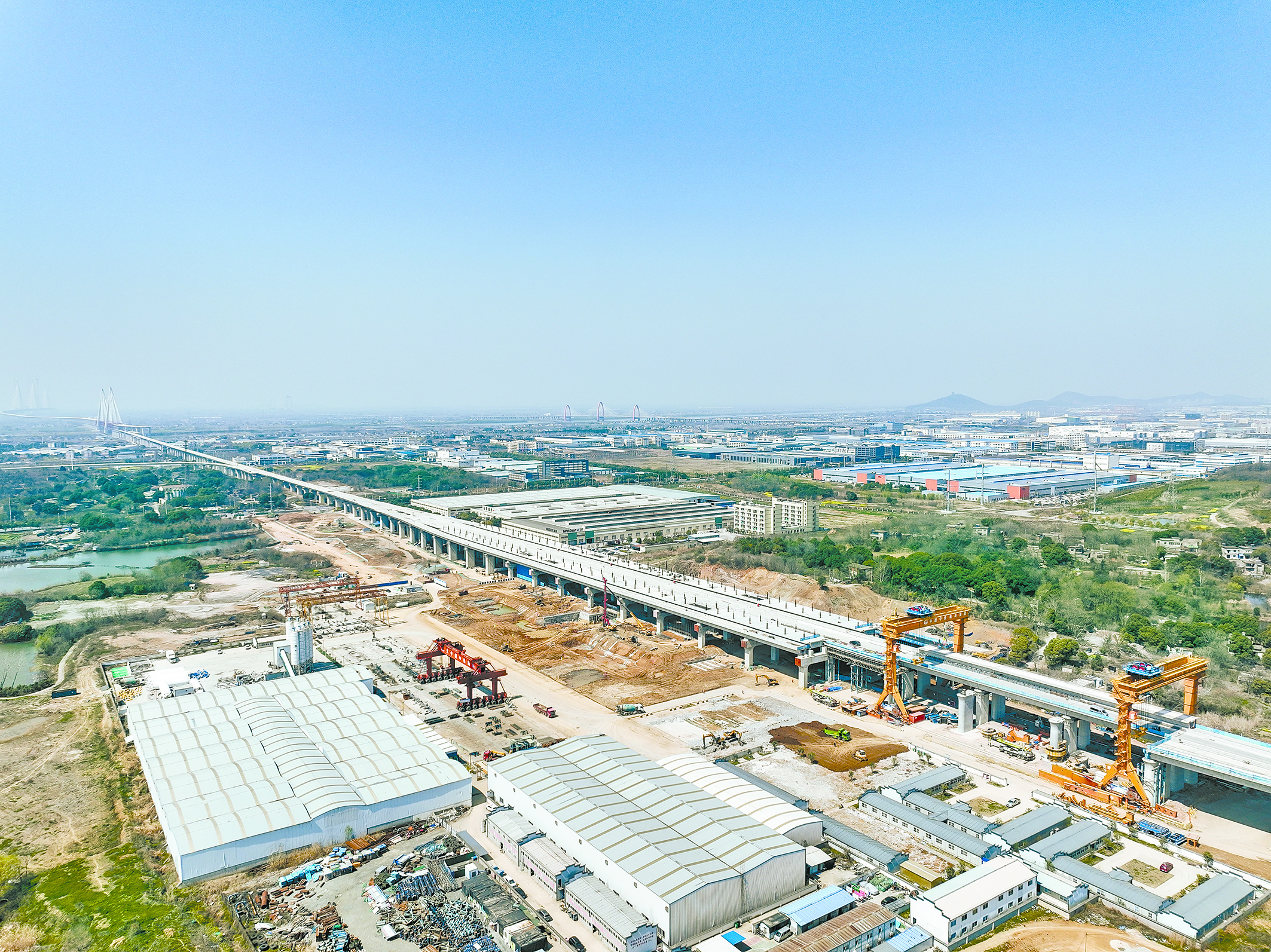 3月25日,在马鞍山南高架站特大桥,施工人员正在进行墩身和现浇梁施工。据了解,巢马城际铁路3标段马鞍山南高架站特大桥桥梁架设基本完成,仅剩余提梁龙口位置的下部结构和现浇梁,现场施工正有序推进,预计今年10月完成道床施工,等待铺轨。 记者 储灿林 通讯员 王芳芳 摄