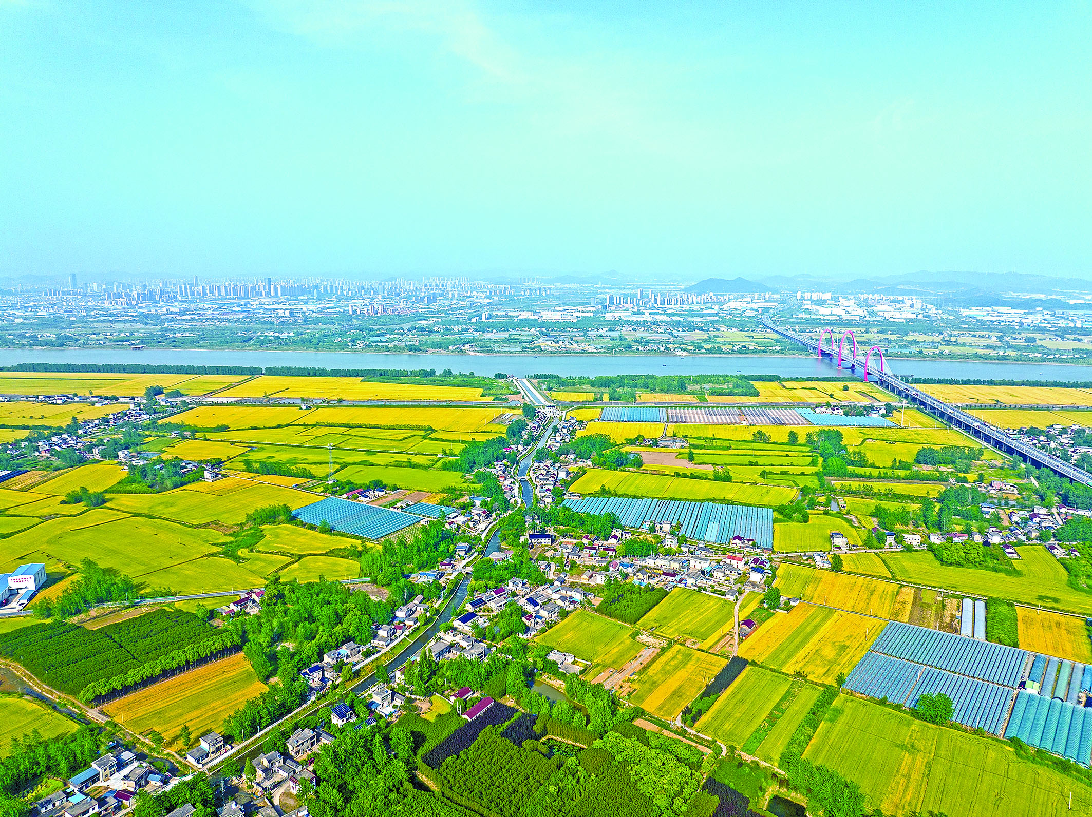 又到一年麦熟时,在当涂县江心乡,麦田里的麦子已经由青转黄,金色麦田和秀美村庄交相辉映,“丰”景独好。
