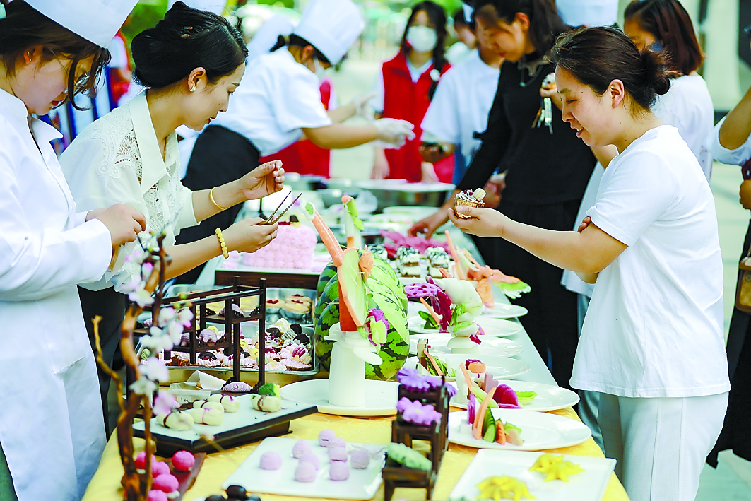 近日,当涂经贸学校内人头攒动、香气四溢,一场融合专业性与趣味性的职业技能体验活动火热开展。其中,烹饪专业学生现场制作的西式甜点以层次分明的口感、艺术化的摆盘设计成为全场焦点,吸引了众多学生和家长驻足观赏、品尝。