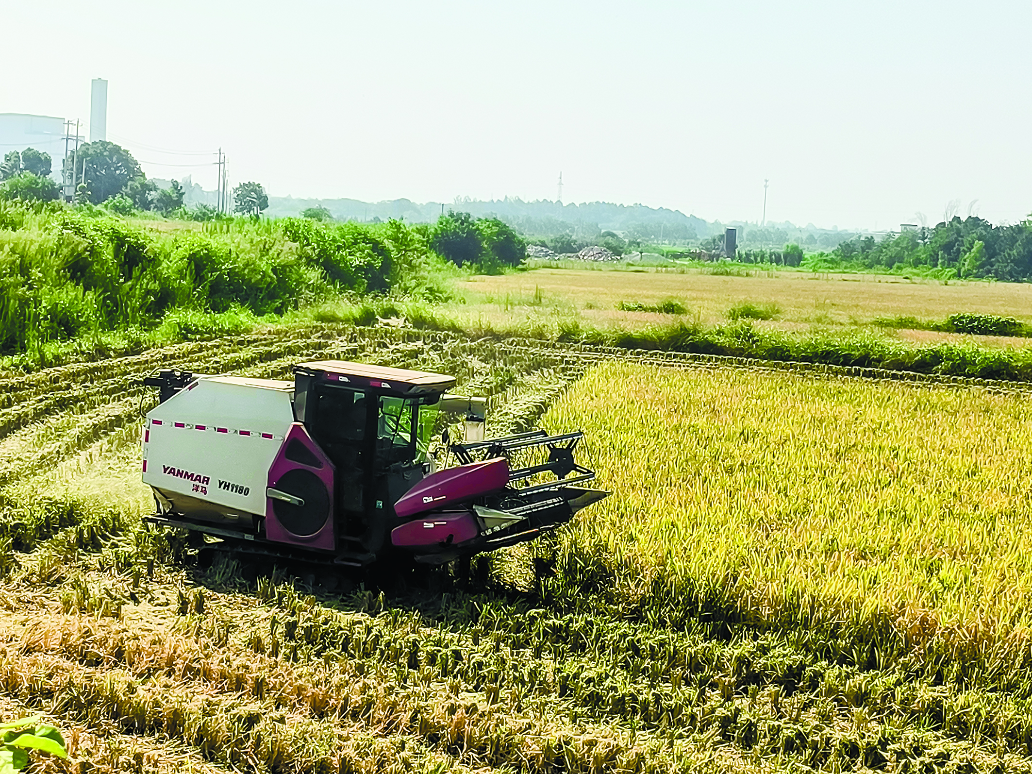 风吹田野、稻浪翻滚,联合收割机开足马力穿梭其中,“吞”下金黄的稻谷,“吐”出细碎的秸秆。“今年种的再生稻长势很好,经专家测算,头茬湿稻亩产达1500斤,折合干稻不少于1400斤。”农场负责人李有忠很是开心。“收割后立即上水施肥,60多天后可收获第二茬,预计亩产600斤以上,全年可实现‘吨亩田’目标。”农技师李加文现场讲解起再生稻“一种两收”的技术优势。