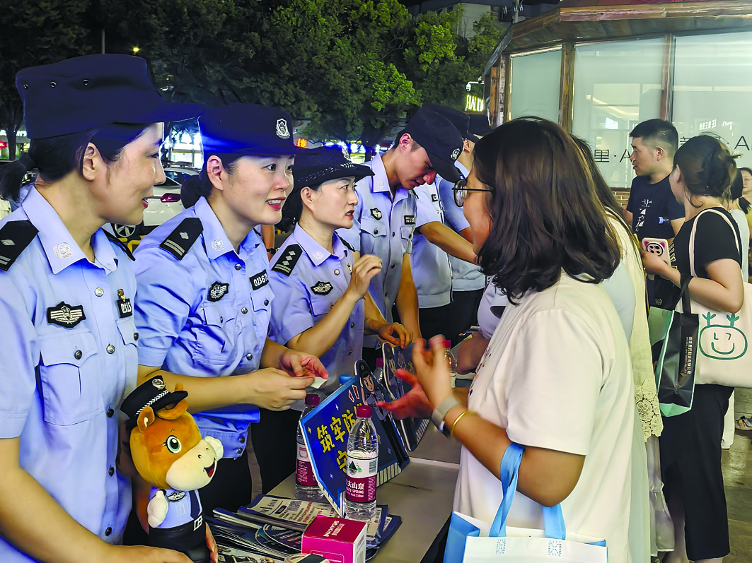 夜幕降临,花山公安分局组织多部门警力在騳街开展联合普法宣传活动。活动现场,民警们通过生动讲解真实案例、开展趣味有奖知识问答等形式,向过往群众普及反电诈、禁毒、经侦等多方面法律知识,将专业法规融入日常场景,让大家在互动中提升法治意识和自我防范能力。