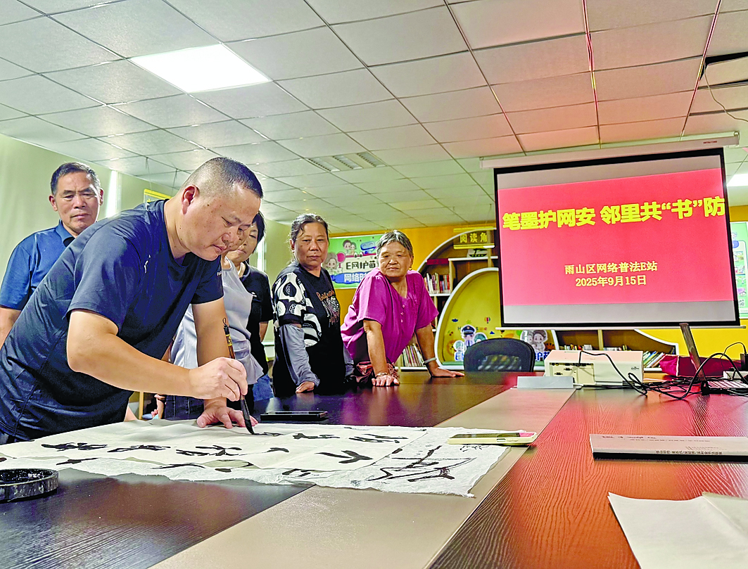 9月15日,贵都社区网络普法E站举办“笔墨护网安,邻里共‘书’防”主题宣传活动,将传统书法艺术与现代网络安全普法相结合,为社区居民带来一场别开生面的普法教育课。“通过书法艺术普及法律知识,既高雅又易懂,让人在欣赏艺术的同时学习了法律知识。”社区居民张玉表示,这种寓教于乐的方式让人印象深刻。