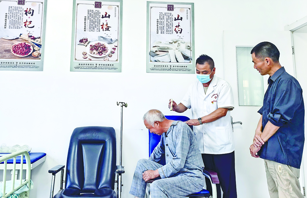 9月15日,向山镇落星村卫生室村医徐家权正在为AA级用户聂应宏提供免费艾灸理疗。近日,落星村创新将党建引领信用村建设与民生服务深度融合,推出信用评价与健康服务挂钩机制,村民凭信用等级可享受肩颈调理、关节养护等专业健康服务,切实解决日常保健需求。此举让“信用有价”落地见效,有效激发了全民参与信用建设的热情。