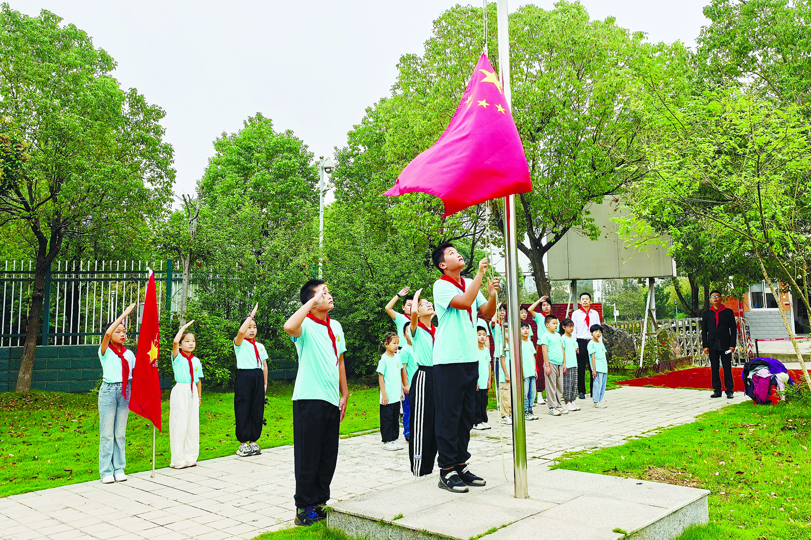 10月13日,中国少年先锋队迎来建队76周年纪念日。南山小学全体师生齐聚校园,隆重举行“强国复兴有我,争当新时代好队员”建队日暨新队员入队仪式。全体师生以庄严的升旗仪式拉开活动序幕。少先队员行队礼,师生高唱国歌,注视国旗冉冉升起,心中涌动着对祖国的热爱与自豪。