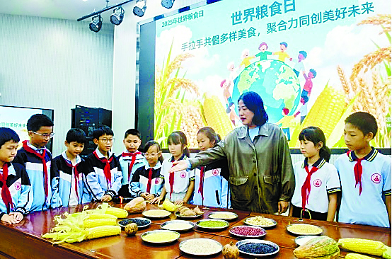 10月16日是第45个世界粮食日,安徽师范大学附属含山实验学校开展“爱粮节粮 从我做起”主题教育活动。老师通过实物展示、精心讲解、现场互动等环节,带领学生认识五谷杂粮,介绍其生长过程与营养价值,以直观的形式培养他们节粮、爱粮、惜粮的意识,引导他们践行节约粮食的良好风尚。