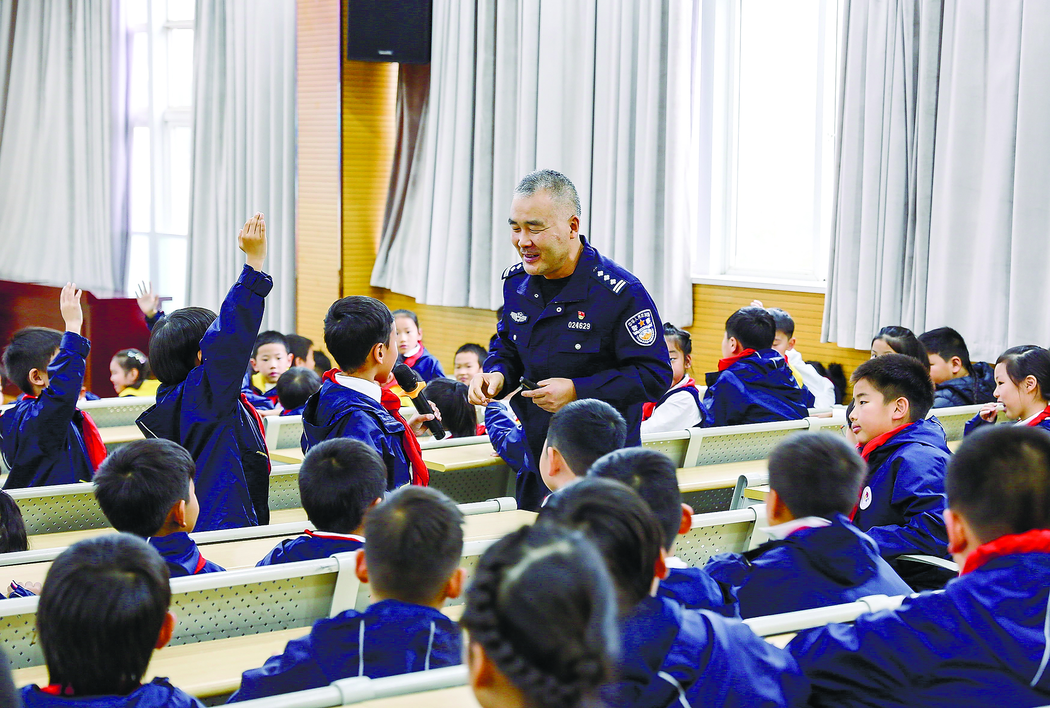 11月7日下午,马鞍山市“劳模工匠思政课活动”走进湖东路四小,全国先进工作者、全国公安系统二级英雄模范周克武为该校近180名二年级学生带来了一堂生动的“匠心成长课”。