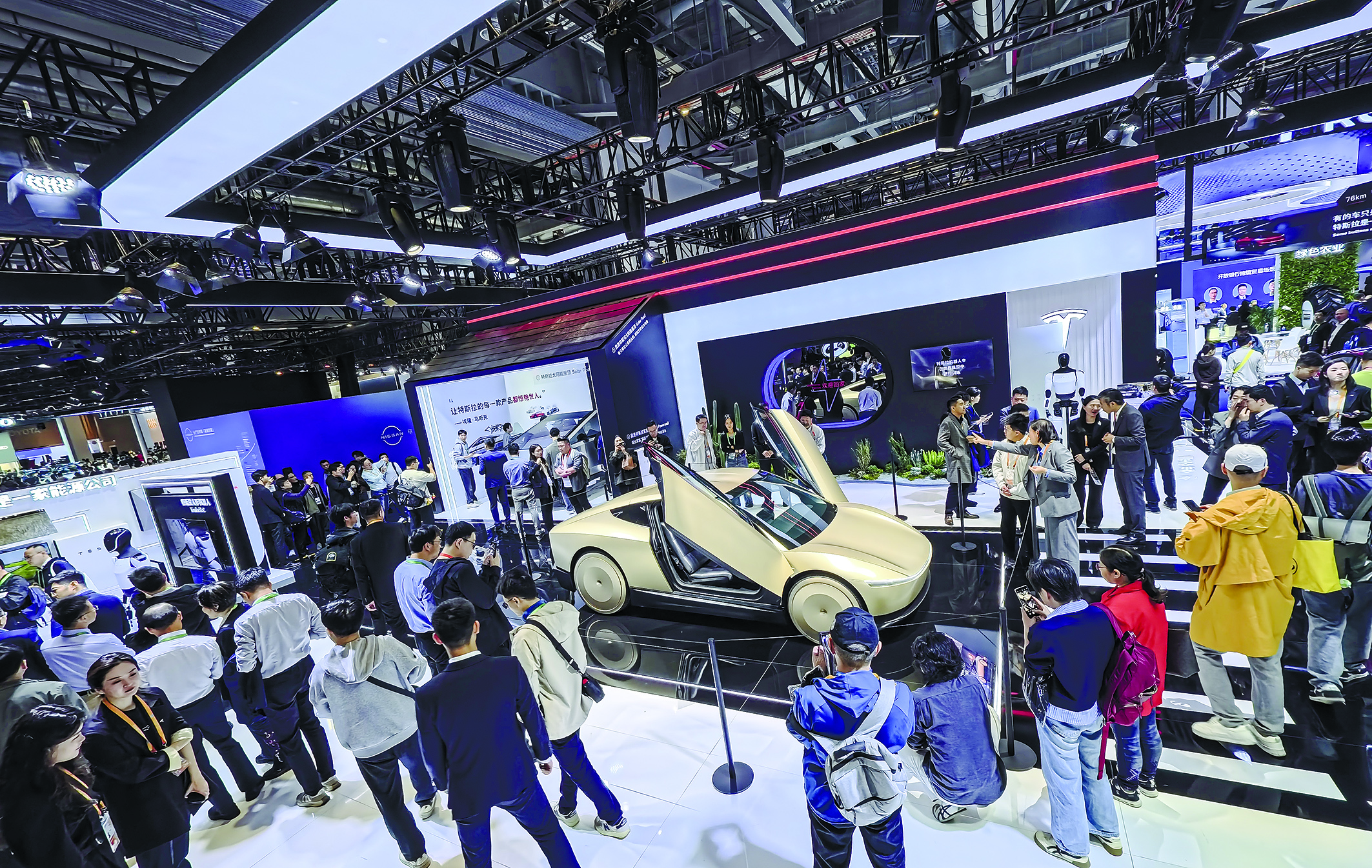 全尺寸倾转涵道翼构型设计、可垂直起降的“空中专车”“飞”进展馆;Cybercab赛博无人驾驶电动车迎来其亚太首秀;头戴式AI—AR导航定位系统、商用认知机器人等惊艳亮相……超43万平方米的展馆内,创新的热浪扑面而来。