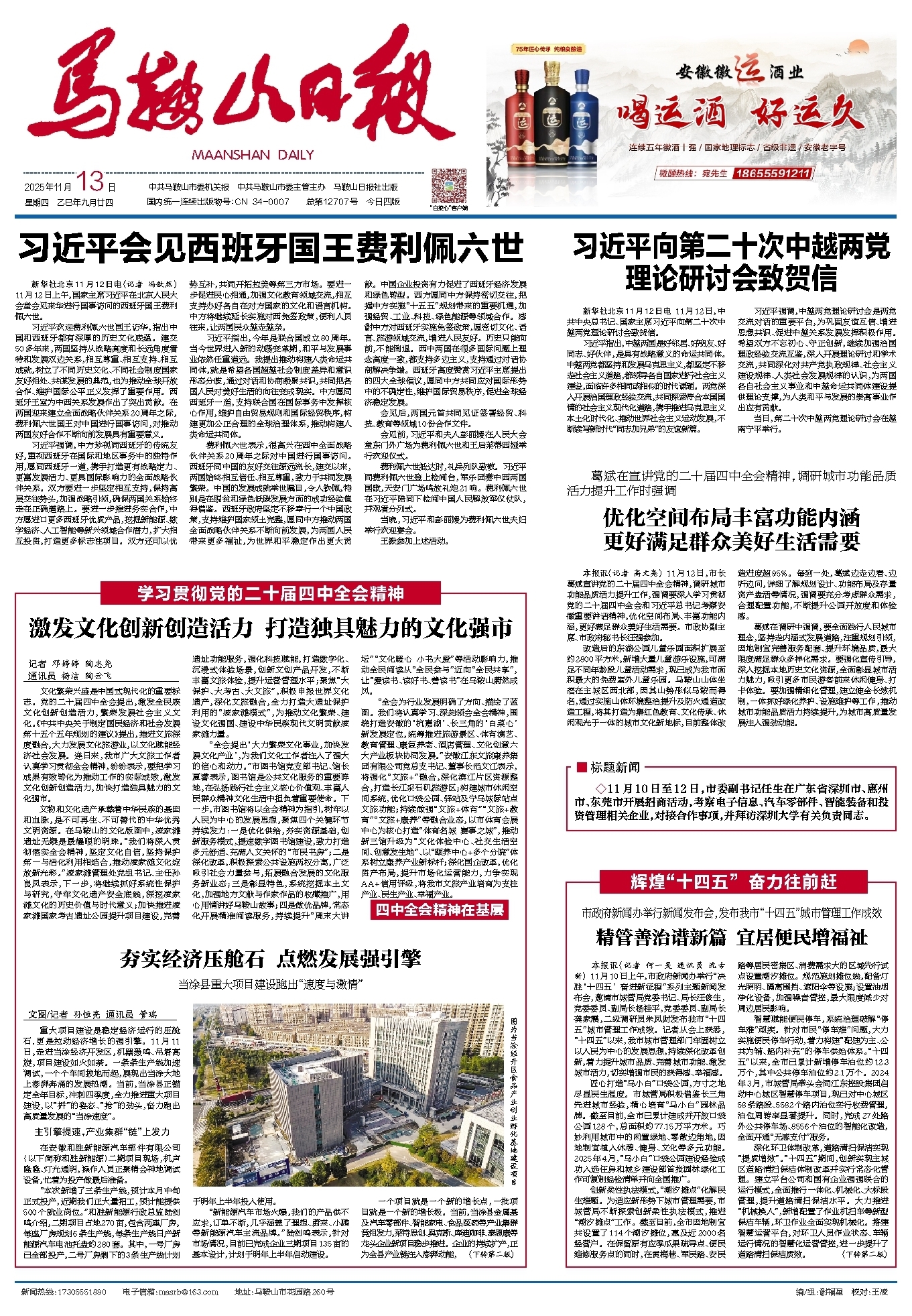 费利佩六世表示,很高兴在西中全面战略伙伴关系20周年之际对中国进行国事访问。西班牙同中国的友好交往源远流长,建交以来,两国始终相互信任、相互尊重,致力于共同发展繁荣。中国的发展成就举世瞩目,令人钦佩,特别是在脱贫和绿色低碳发展方面的成功经验值得借鉴。西班牙政府坚定不移奉行一个中国政策,支持维护国家领土完整,愿同中方推动两国全面战略伙伴关系不断向前发展,为两国人民带来更多福祉,为世界和平稳定作出更大贡献。中国企业投资有力促进了西班牙经济发展和绿色转型。西方愿同中方保持密切交往,把握中方实施“十五五”规划带来的重要机遇,加强经贸、工业、科技、绿色能源等领域合作。感谢中方对西班牙实施免签政策,愿密切文化、语言、旅游领域交流,增进人民友好。历史只能向前,不能倒退。西中两国在很多国际问题上理念高度一致,都支持多边主义,支持通过对话协商解决争端。西班牙高度赞赏习近平主席提出的四大全球倡议,愿同中方共同应对国际形势中的不确定性,维护国际贸易秩序,促进全球经济稳定发展。