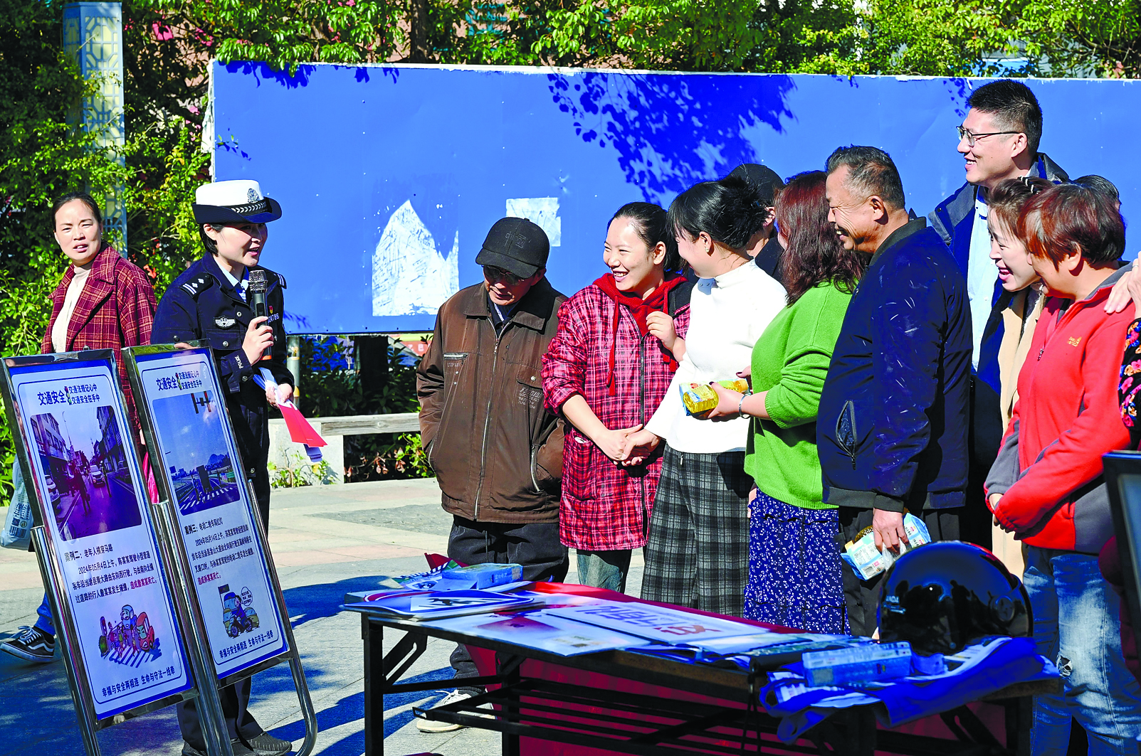 日前,当涂县公安局交管大队联合保险公司,在石桥农民广场组织开展“美丽乡村行”交通安全巡回宣传活动。活动现场,民警通过发放宣传手册、现场讲解、案例分析等形式,向群众普及交通安全知识、保险理赔常识,提醒大家自觉遵守交通规则,增强风险防范意识。