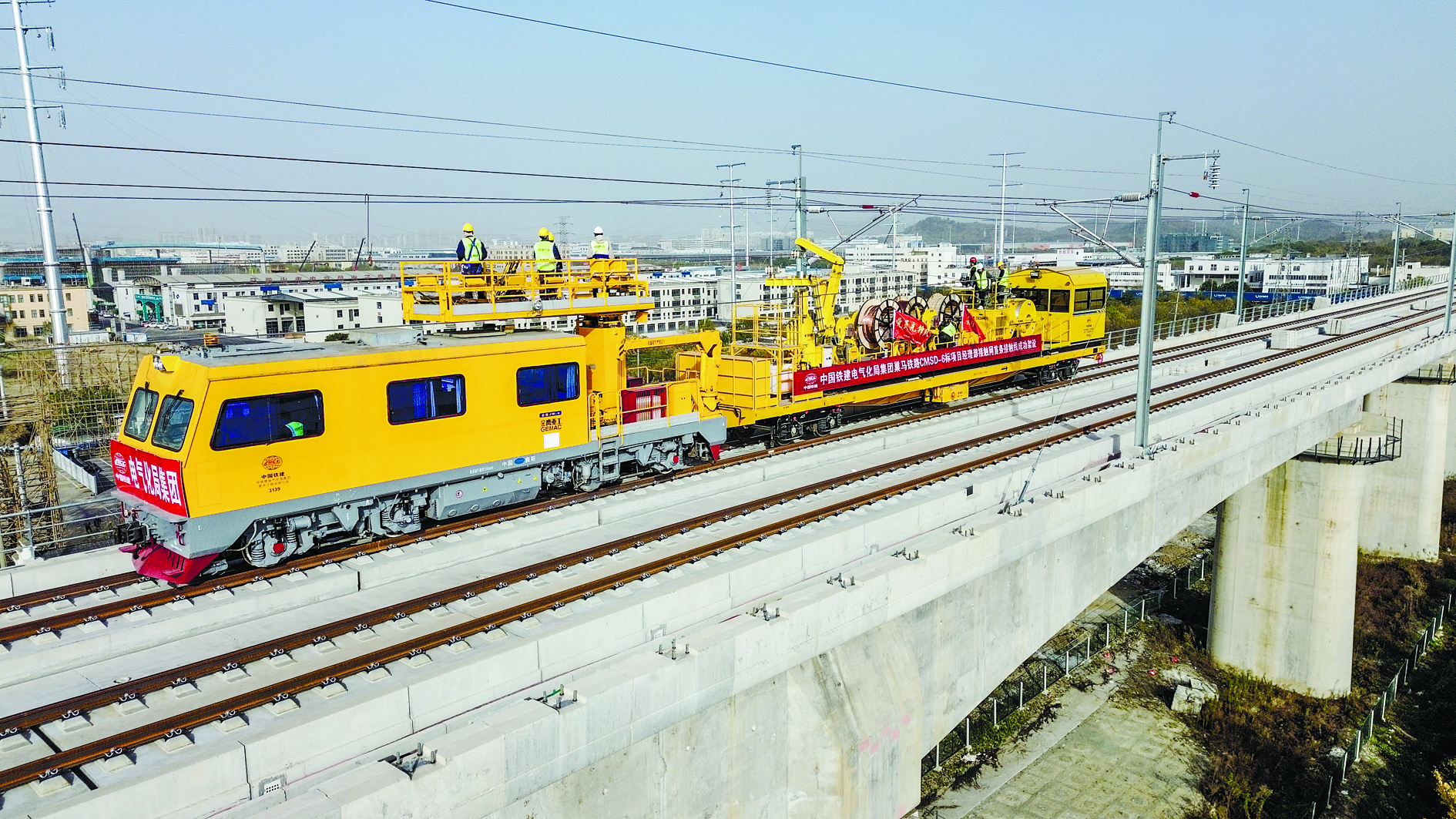 本报讯(记者 刘小庆 通讯员 芮彬彬) 11月27日,巢马城际铁路全线首条接触线顺利架设完成(如图),标志着接触网工程正式进入全面施工冲刺阶段,为巢马城际铁路如期建成通车筑牢坚实基础。