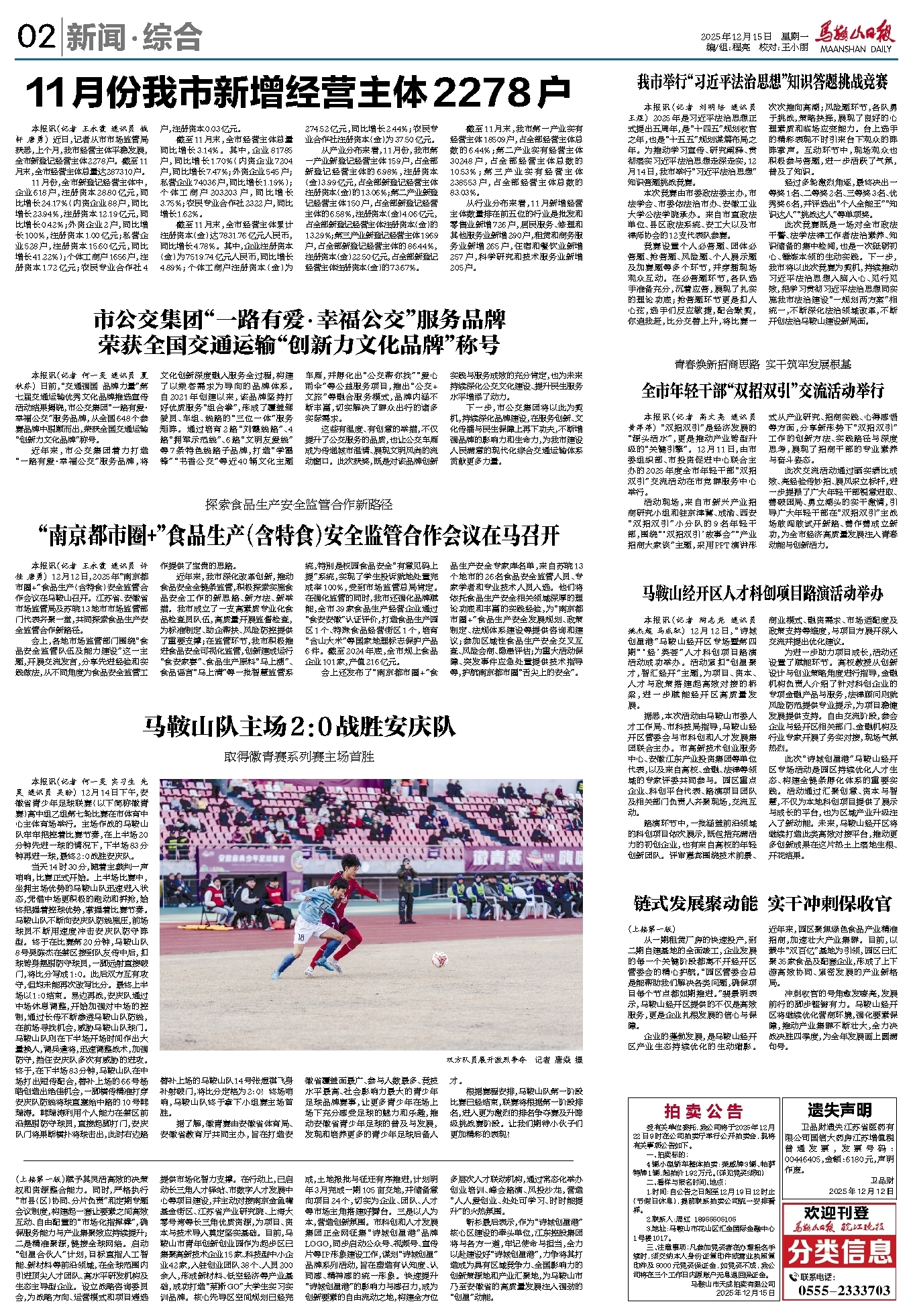 本报讯(记者 王永霞 通讯员 钱轩 唐勇) 近日,记者从市市场监管局获悉,上个月,我市经营主体平稳发展,全市新登记经营主体2278户。截至11月末,全市经营主体总量达287310户。