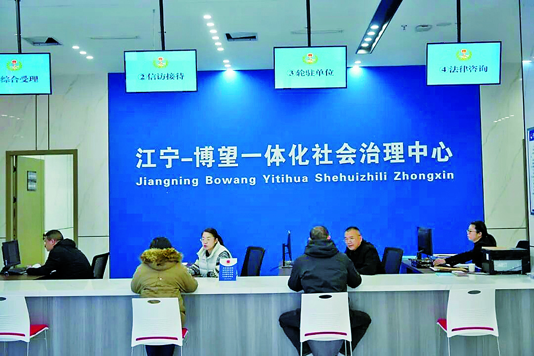 一系列跨域协作平台与机制相继落地见效,江宁-博望一体化社会治理中心实现“诉求一站式受理、问题协同化处置”;“两省一街”警务室让群众“进一扇门、办两省事”;宁博共享法庭破解跨省诉讼“往返跑”难题;苏皖环石臼湖人民调解委员会筑牢矛盾纠纷化解防线;石臼湖生态保护检察联盟守护区域生态安全。这些平台机制的建成,有效推动了省际毗邻地区平安建设质效提升,为长三角区域协同发展筑牢了平安法治基石。
