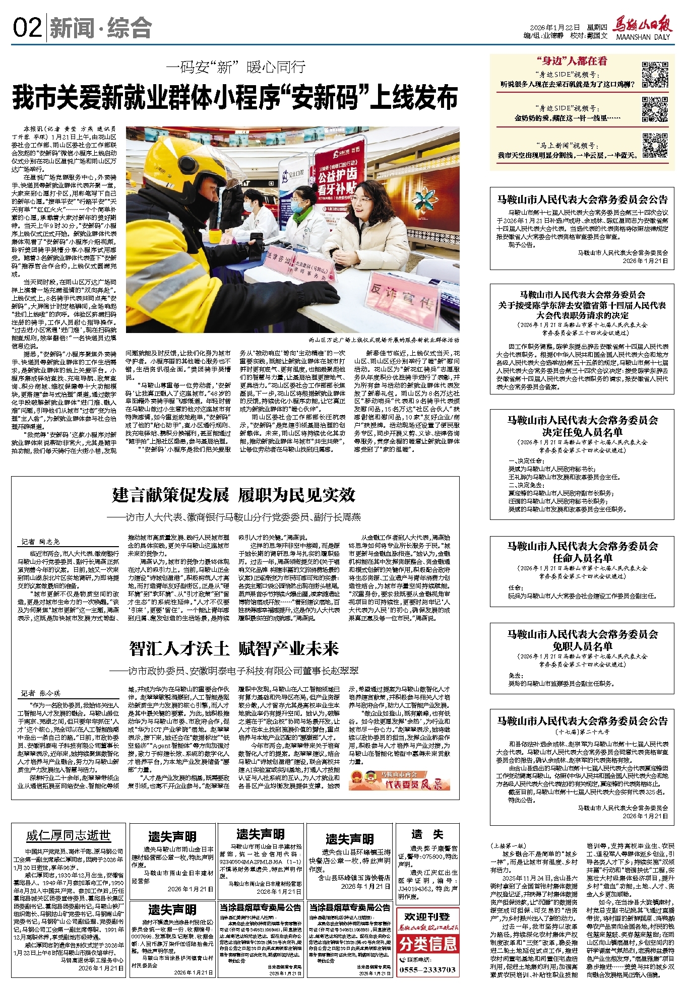 本报讯(记者 黄莹 方燕 通讯员 丁开蓉 毕琛) 1月21日上午,由花山区委社会工作部、雨山区委社会工作部联合发起的“安新码”微信小程序上线启动仪式分别在花山区星悦广场和雨山区万达广场举行。