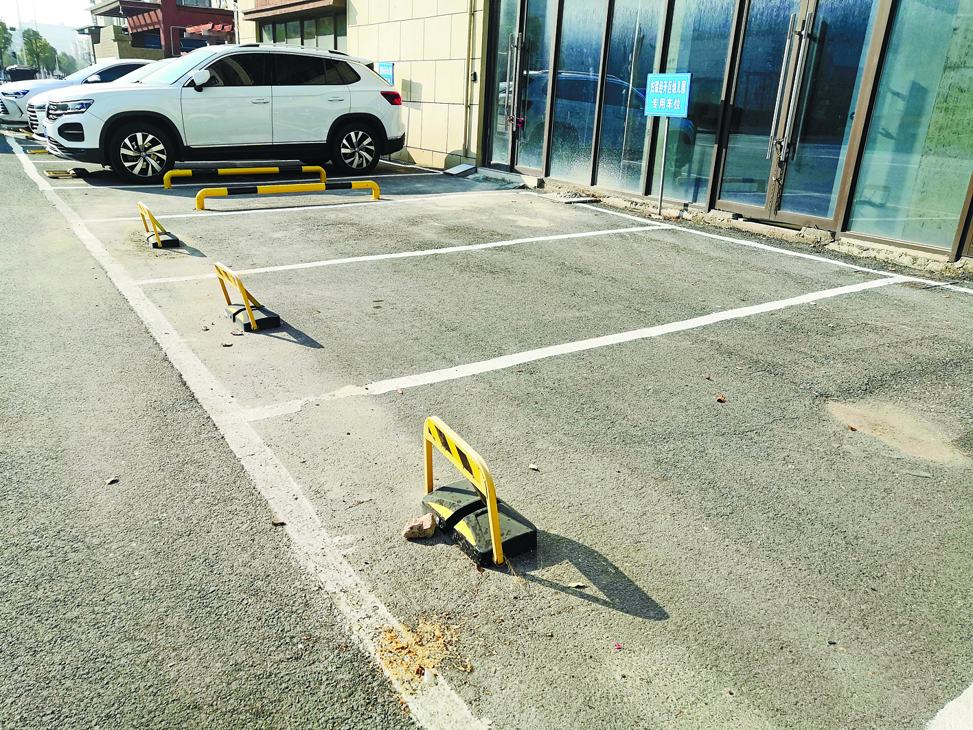 当天上午,记者在现场看到,市妇联幼儿园经开区分园北侧、物业用房旁的空地上,整齐施划着9个停车位,每个车位均安装了地锁,车位后侧立着醒目的“妇联经开区幼儿园专用车位”标牌。此时,5个车位停放着车辆,其余4个车位的地锁处于开启状态,暂无车辆停放。记者注意到,这些车位紧邻一栋尚未投入使用的新楼,一旦楼内投入使用、人员入驻办公,其中至少有3个车位将直接挡住该楼的进出通道。