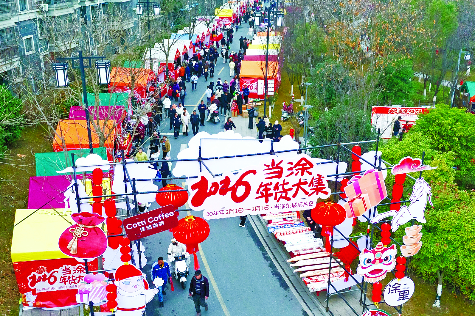 本报讯(记者 孙恒亮 通讯员 王沅霞) 2月1日,走进当涂县东城墙片区,灯笼高挂、摊位林立,人声鼎沸、热气腾腾——为期三天的2026当涂年货大集在这里热闹开集,烟火气与人情味交织成一幅喜气洋洋的新春画卷,浓浓年味扑面而来。