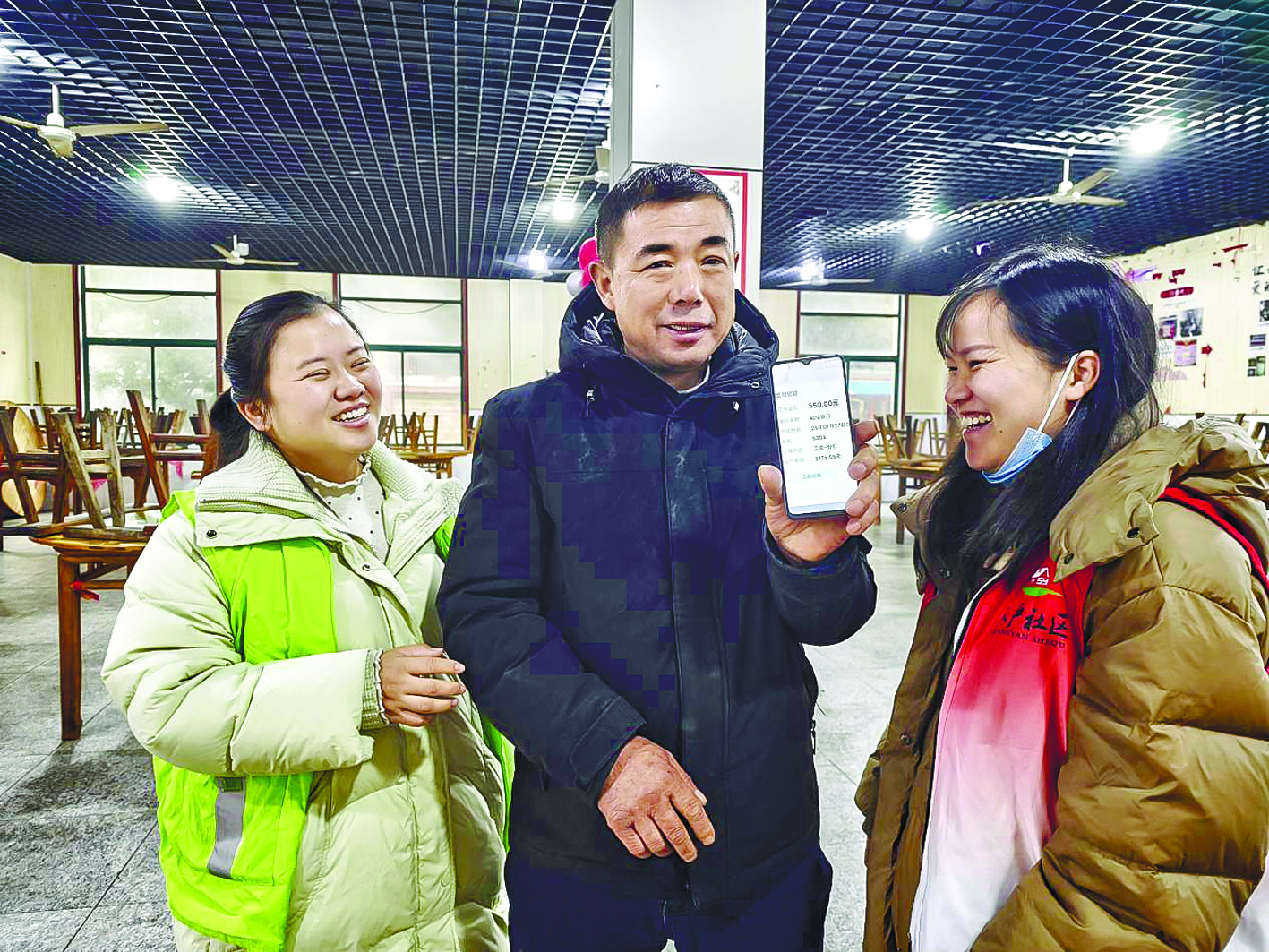 严录武的这份“年终奖”,源于社区党组织引领的长期惠民实践:自2012年起,社区持续为60岁以上老人购买了人身意外险;2017年成立集体股份经济合作社后,又将资产收益转化为居民分红。两项惠民举措切实提升了居民的幸福感与获得感。图为一居民在展示“年终分红”短信。