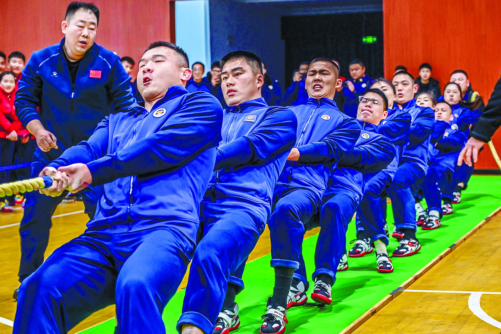 上午9时,比赛正式鸣哨开赛。赛场上,队员们紧握长绳、双脚蹬地、重心后压、眼神坚定、口号整齐、咬紧牙关、拼尽全力。一根绳索,牵动的是团结一心的信念;一声呐喊,传递的是奋勇争先的斗志。场边,队友和观众的助威声此起彼伏,掌声、呐喊声汇成一片激昂的战鼓,点燃了整个赛场的热情。