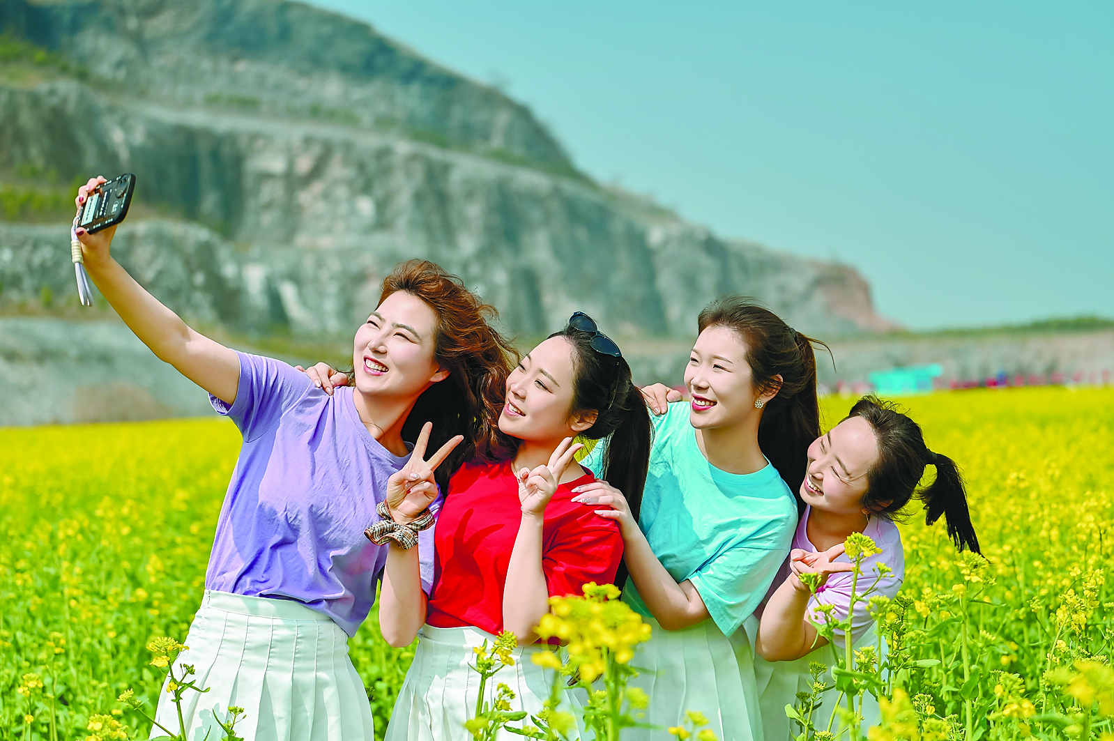 “我在这里生活了大半辈子,以前这里挖矿挖得坑坑洼洼,到处都是灰,连树都长不活,谁能想到现在能变成这么漂亮的公园。”今年61岁的本地村民唐先武把自己的小卖部“搬”到了花田集市,笑着说道:“你看那些拍照的游客,根本想不到脚底下以前是几十米深的矿坑,我们现在也跟着沾光,在家门口就能做生意,日子比以前红火多了!”趁着周末活动的“春风”,他一天仅靠卖水就赚了六七百元。