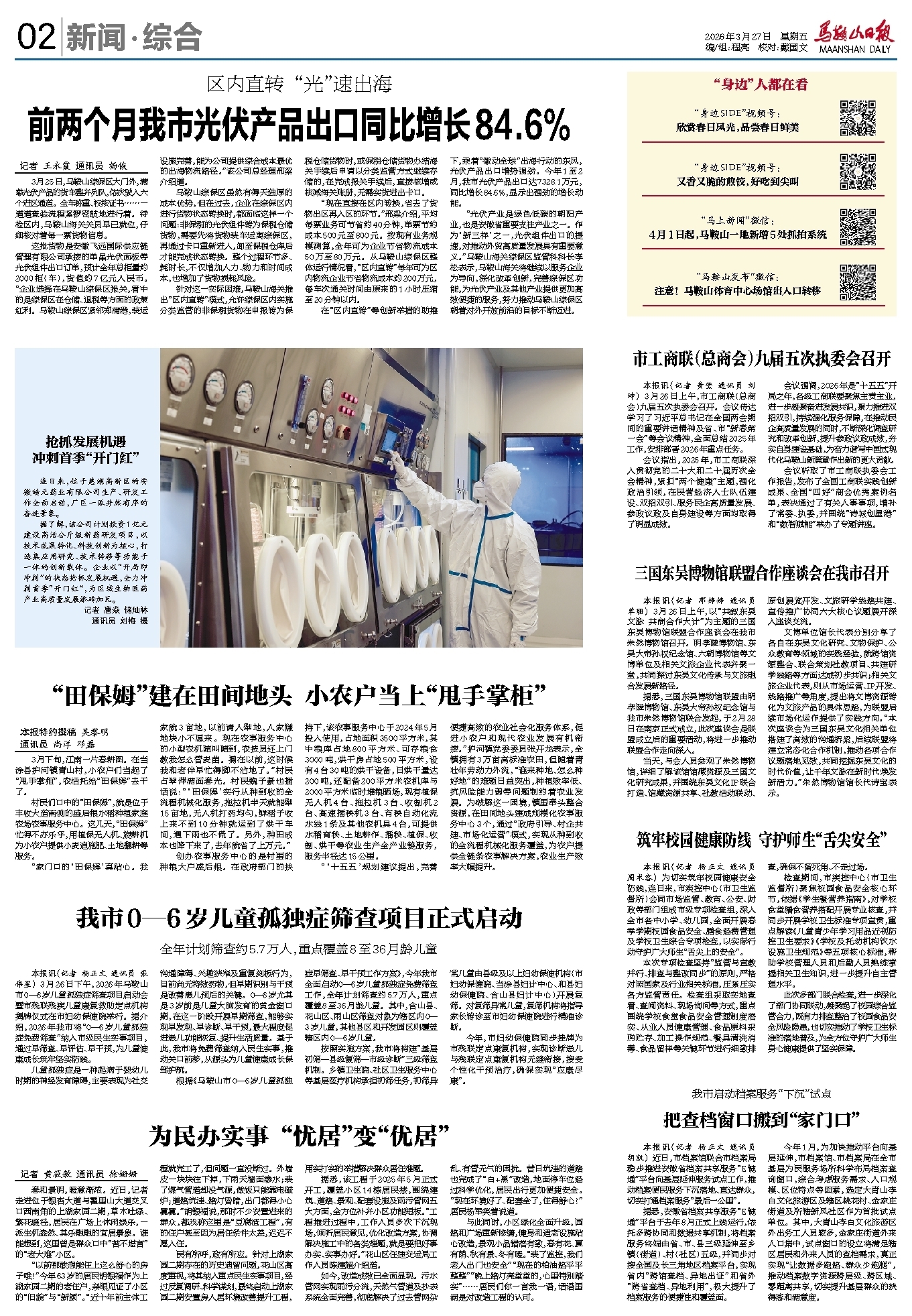 “光伏产业是绿色低碳的朝阳产业,也是安徽省重要支柱产业之一。作为‘新三样’之一,光伏组件出口的提速,对推动外贸高质量发展具有重要意义。”马鞍山海关综保区监管科科长李松表示,马鞍山海关将继续以服务企业为导向,深化改革创新,完善综保区功能,为光伏产业及其他产业提供更加高效便捷的服务,努力推动马鞍山综保区朝着对外开放前沿的目标不断迈进。
