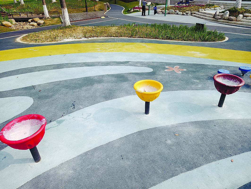3月23日上午,记者来到康泰游园实地探访。在康泰游园的儿童游乐区域有两处比较大的沙坑,一些孩子蹲在沙坑中拿着铲子等工具玩兴正浓。此时,公园里的碗状座椅中,有不少沙子黏附在上面,还有一些游乐设施上也有一些残留的沙子。