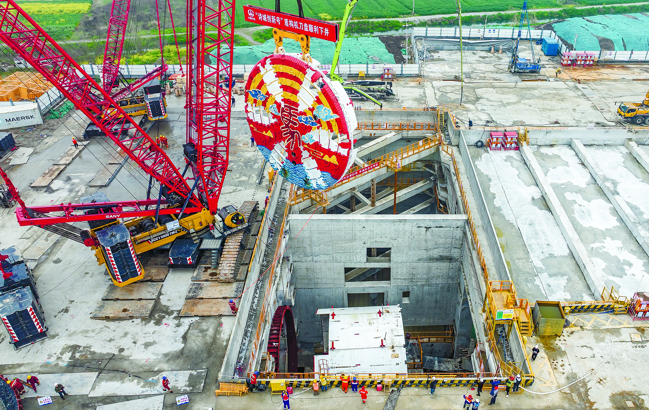 “诗城创新号”盾构机刀盘成功下井