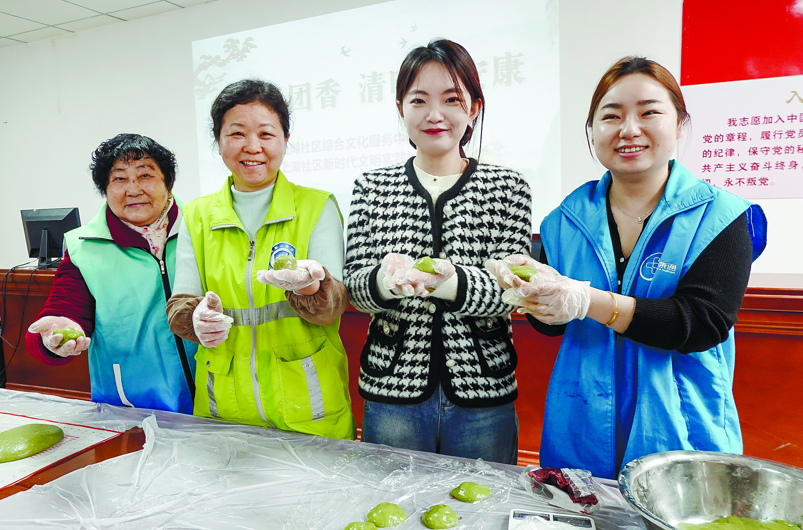 为传承民俗、温暖邻里,近日,花山区上湖社区开展“指尖青团香 清明共安康”青团制作活动。社区工作人员、居民、物业人员等齐聚一堂,揉面、包馅、蒸煮,一双双巧手将春日绿意与邻里温情,统统包进一枚枚青团中。之后,社区工作人员还主动上门将制作好的青团送到孤寡老人的家中,让老人们也能品尝到这份春季美食。