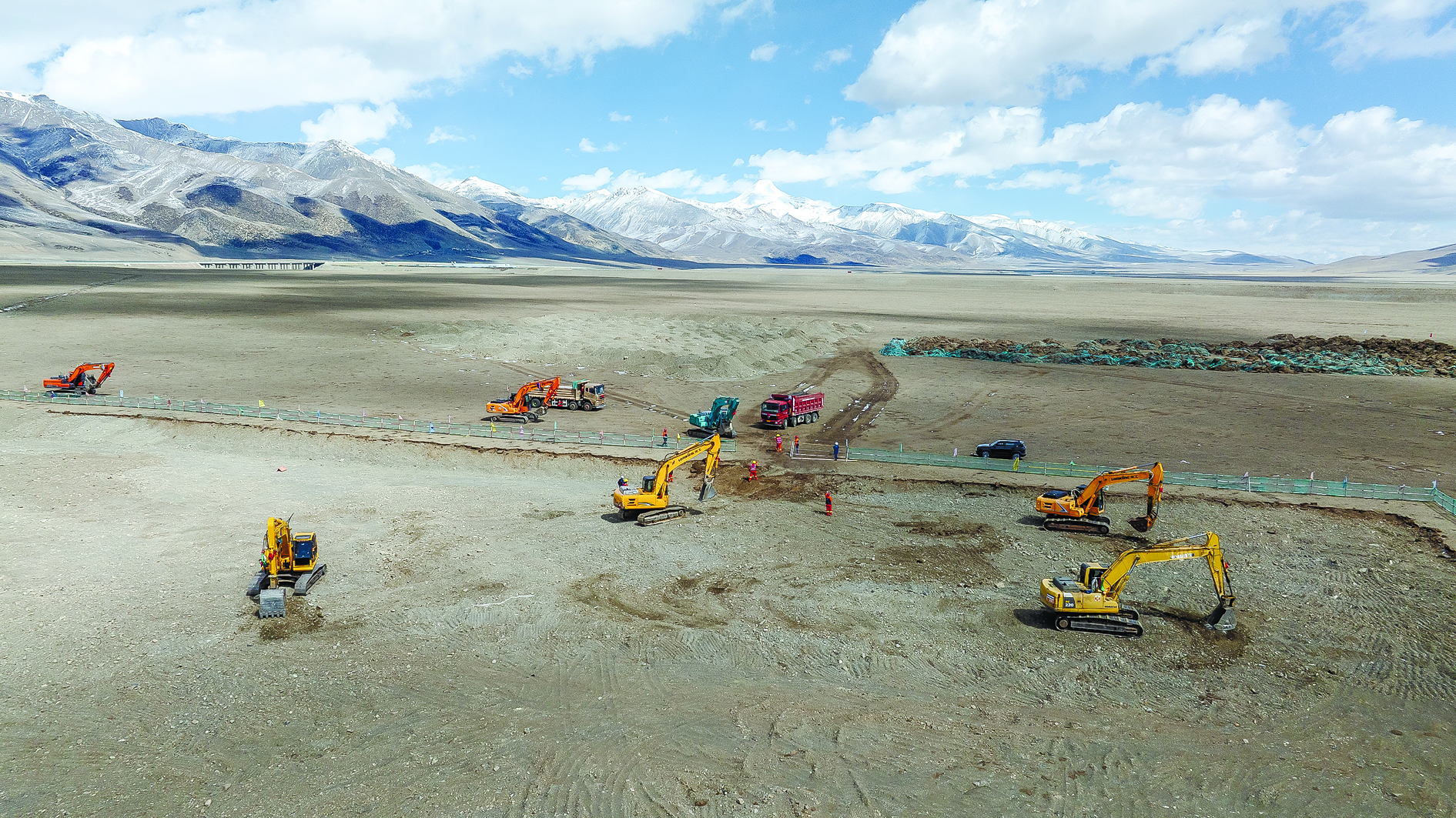 这是中广核西藏当雄乌玛塘50兆瓦光热电站破土动工现场(4月6日摄,无人机照片)。