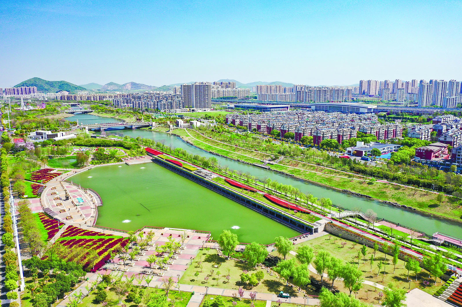 春日的慈湖河,碧波荡漾,两岸新绿如茵,宛如一幅徐徐展开的生态画卷。