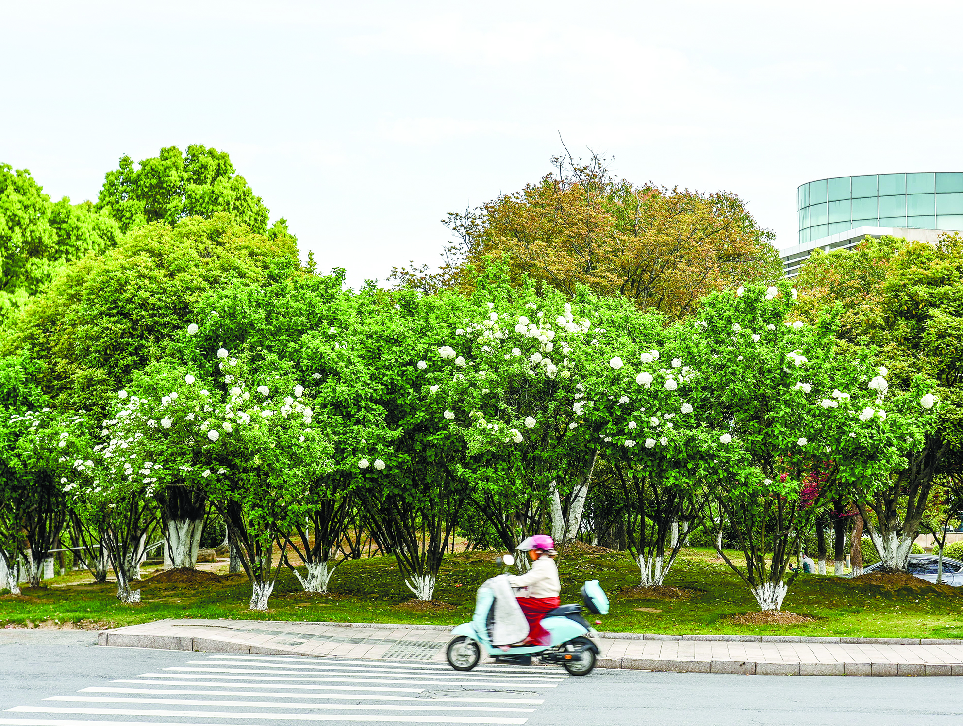 春光正好,市政公园内,成片的木绣球进入盛花期。洁白如玉的花团簇拥成硕大的“雪球”,压弯了枝头,宛若一大片的“抹茶冰淇淋”。