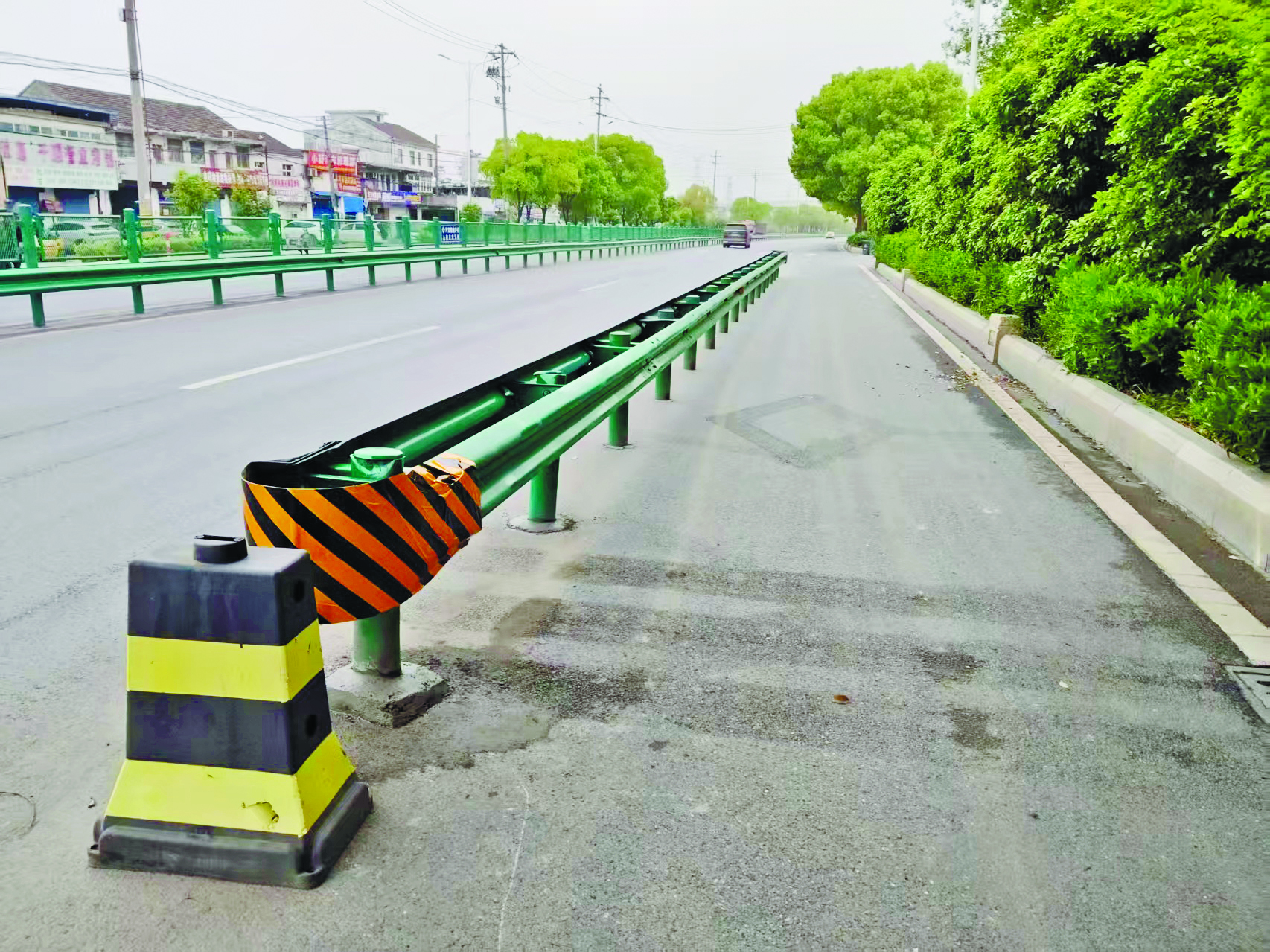 图①:修复后的护栏。市交运局供图 图②:被撞坏的护栏。记者 唐冰倩 摄