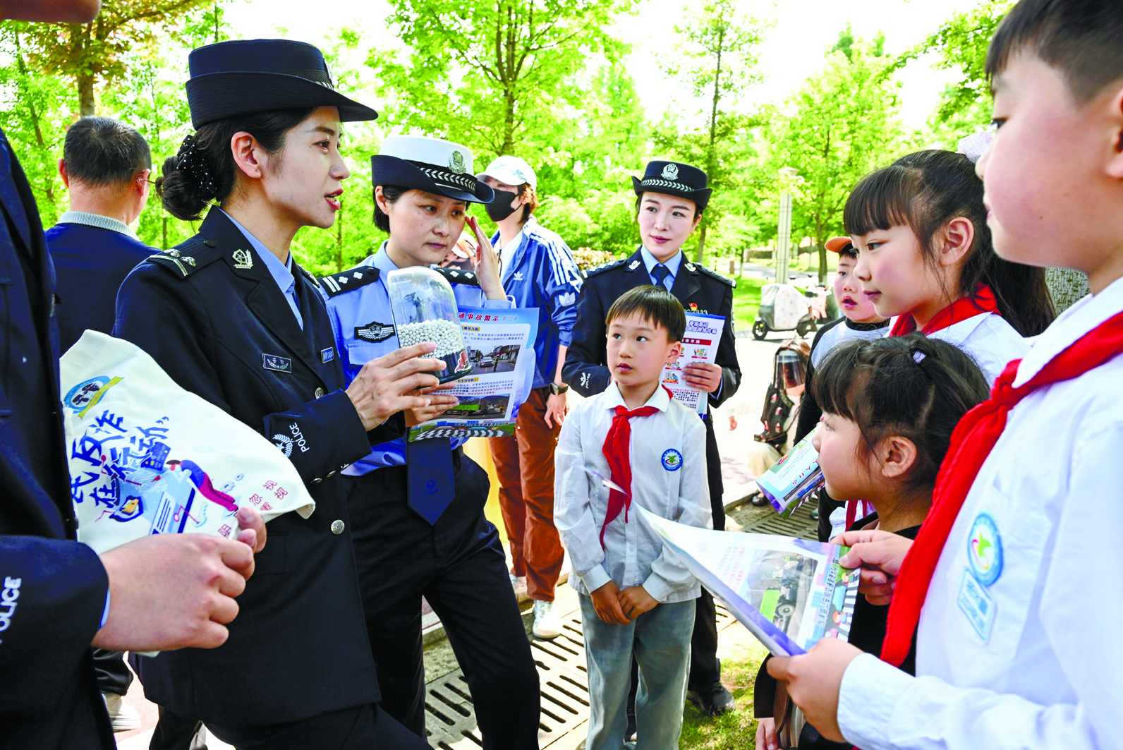 4月19日,当涂县公安局组织交警、禁毒、刑侦、经侦等警种走进凌云山公园开展普法宣传活动。