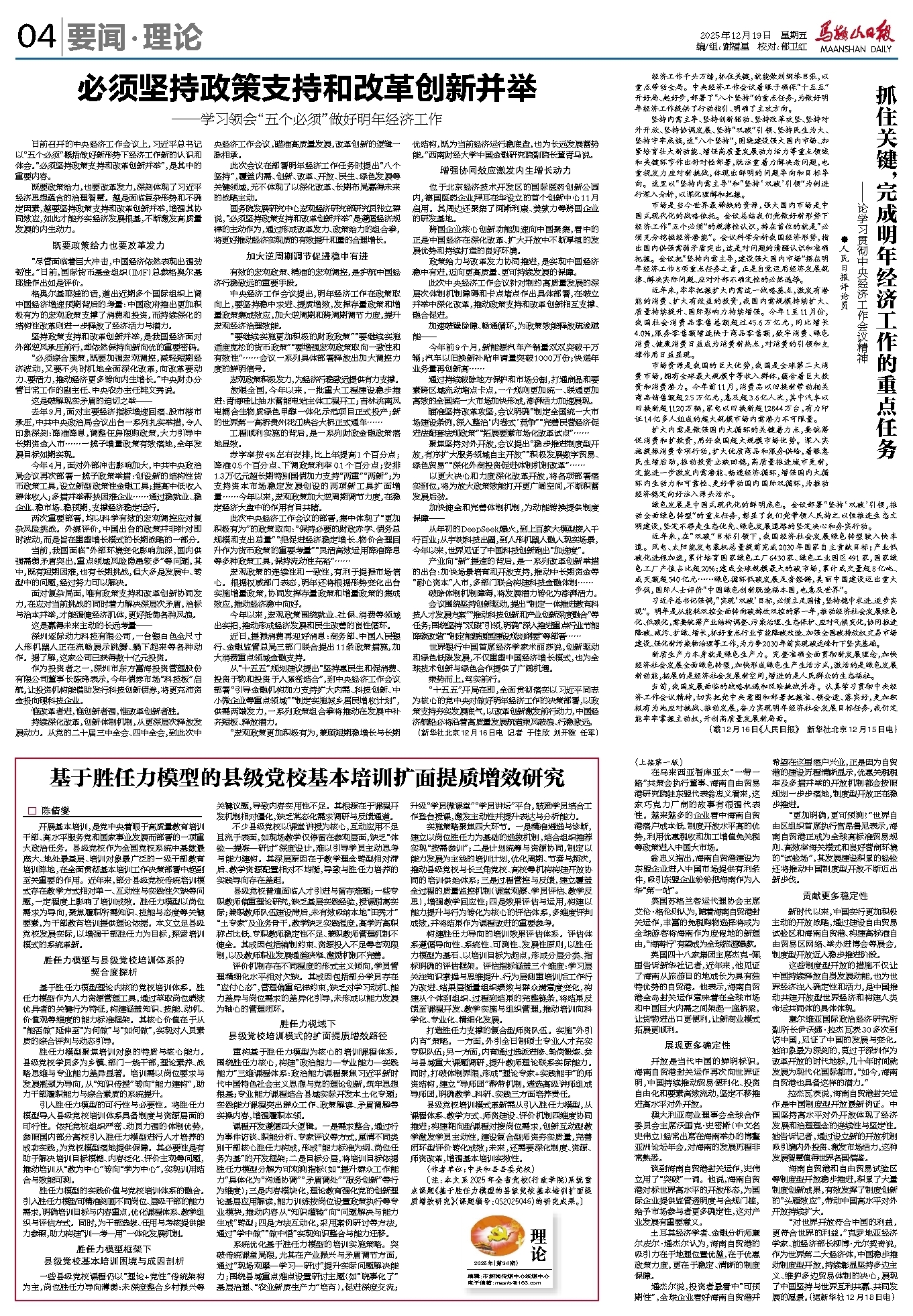 抓住关键,完成明年经济工作的重点任务