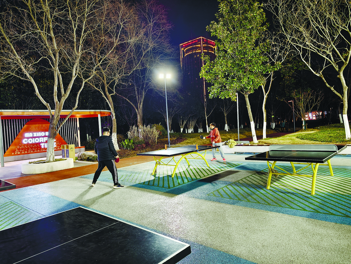 此前,有市民通过“马上办”反映,南湖公园乒乓球桌附近灯光昏暗,影响夜间运动体验,希望能加装照明灯。接到诉求后,市城管局园林处迅速响应,实地勘察后广泛征求群众意见,最终确定在乒乓球台旁安装一盏5米高的高杆灯,彻底改善场地照明条件。