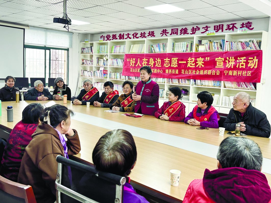 为深入弘扬好人精神,传递社会正能量,进一步推动精神文明建设,近日,由花山区新时代文明实践中心、花山区社会组织联合会、花山好人志愿服务队共同发起的“好人在身边 志愿一起来”好人宣讲活动,走进宁南新村社区,为辖区居民带来了一场触动心灵、见贤思齐的榜样宣讲。