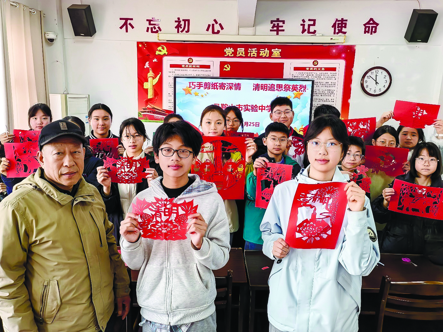 图为马鞍山市实验中学开展“巧手剪纸寄深情 清明追思祭英烈”主题活动,同学们用精巧的技艺勾勒英雄形象、镌刻红色印记,将对革命先烈的缅怀与崇敬融入指尖创作,在感受非遗剪纸魅力的同时,重温革命历史、传承红色基因,让英烈精神浸润心灵、激励成长。