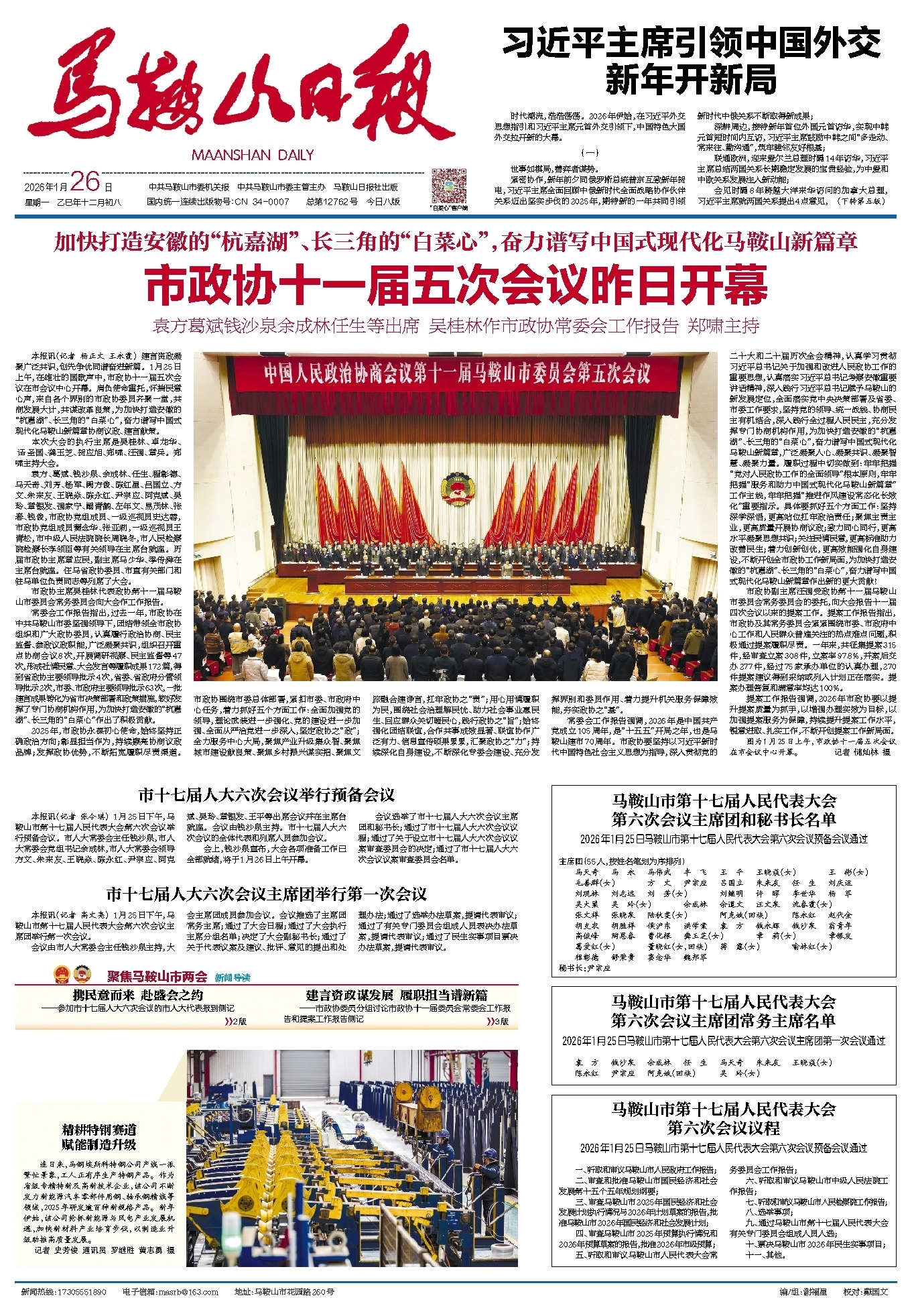 马鞍山市第十七届人民代表大会第六次会议主席团和秘书长名单