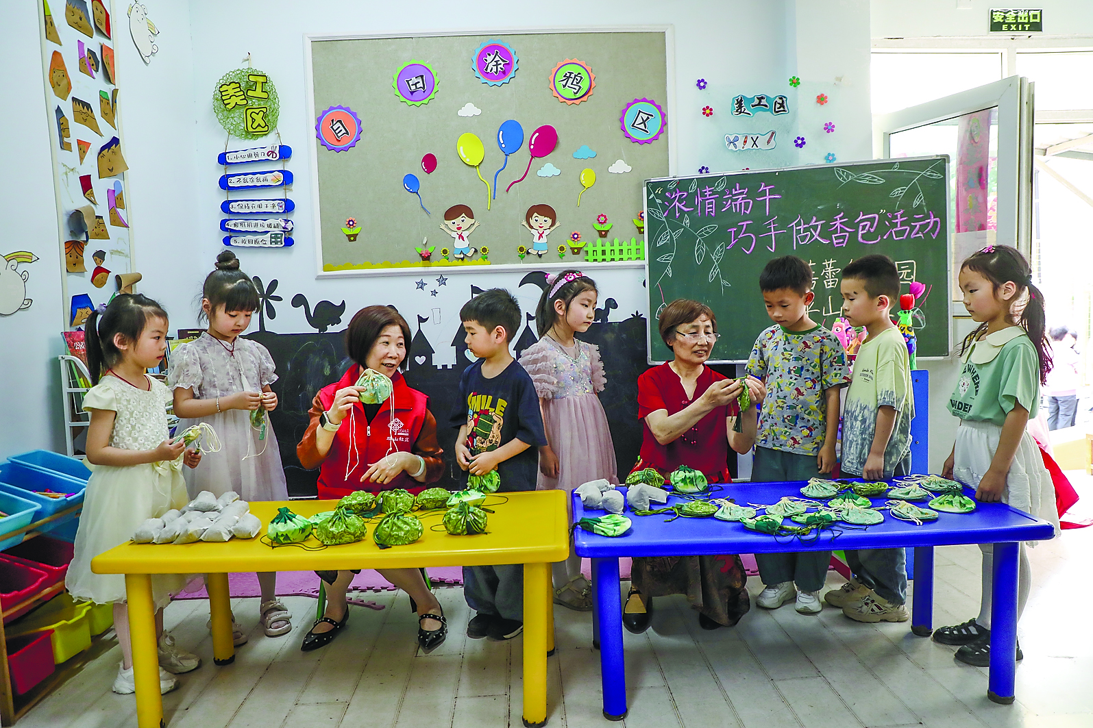 5月21日,雨山区向山镇平山社区组织居民走进辖区内的幼儿园,开展了一场别开生面的端午节主题活动,手把手教小朋友们制作香包,并告诉他们端午节的由来与习俗,让他们感受中华优秀传统文化的魅力。