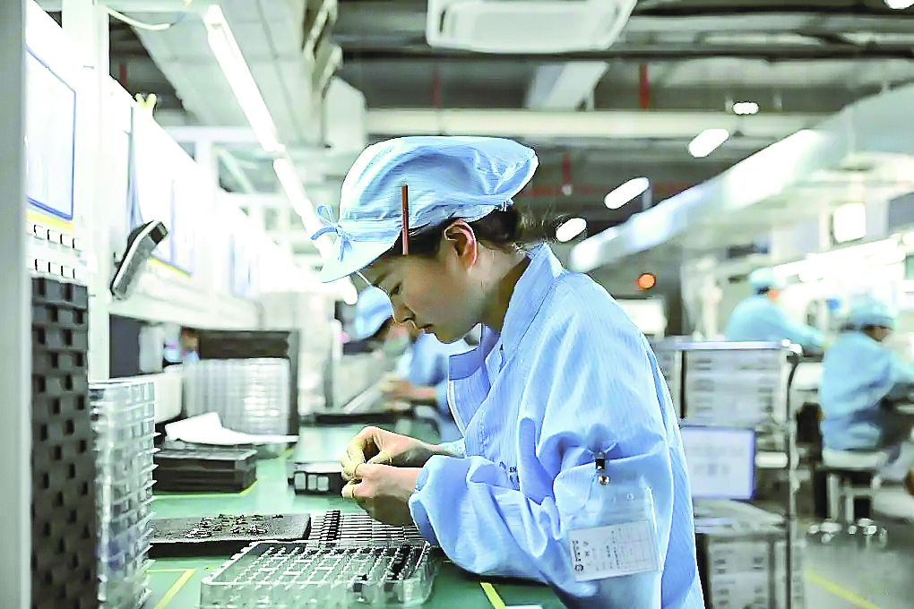图为5月21日,安徽希磁科技股份有限公司的工作人员在组装一款传感器。