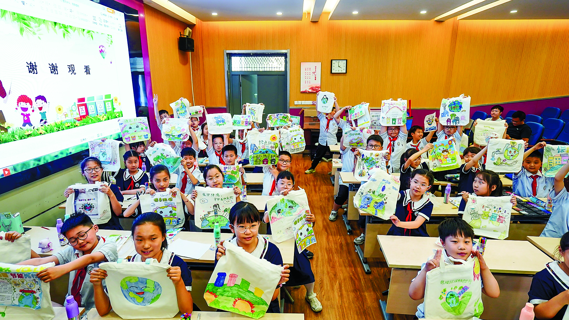 近日,市生态环境局志愿者们东方城小学的50余名学生上了一堂生动的校园“无废”科普课,通过环保宣传、知识普及、趣味问答等形式,向同学们讲解垃圾分类和资源循环利用的重要性。孩子们还在现场用五彩斑斓的画笔创作了一幅幅环保主题绘画,描绘出自己心中的绿色马鞍山。