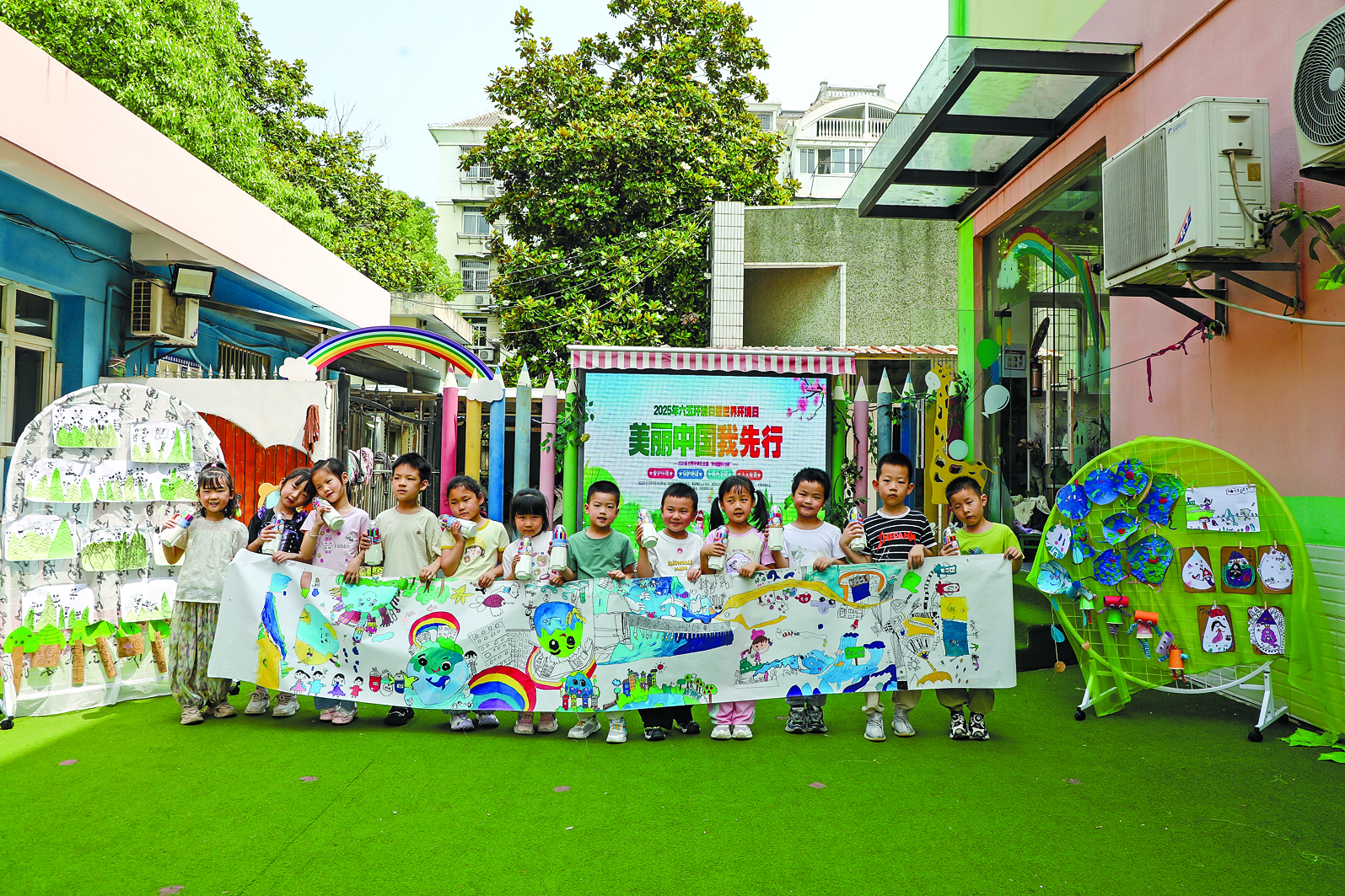 6月4日,雨山区生态环境分局联合鸳鸯社区在雨山幼儿园开展了一场别开生面的环保主题宣传活动,通过播放环保主题宣传片、带领孩子进行“绿色地球”“环保行动”主题绘画等,让孩子们在亲身参与中树立环保意识。