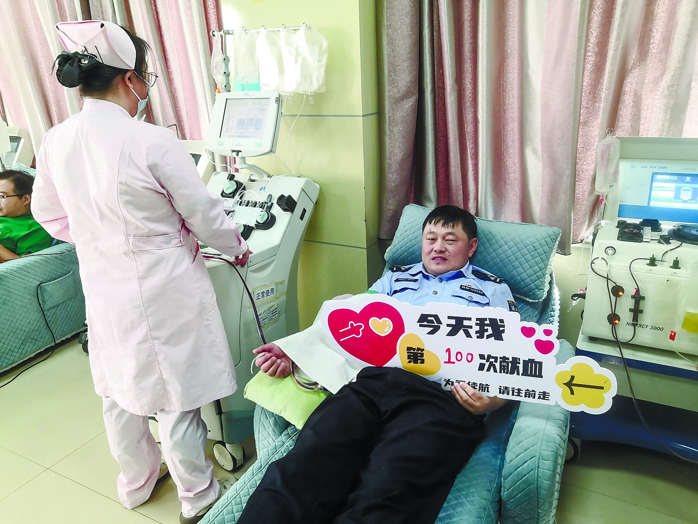 6月3日,市公安局交警支队楚江大队辅警胡志斌迎来人生中第100次无偿献血。至此他个人累计献血达31300毫升。