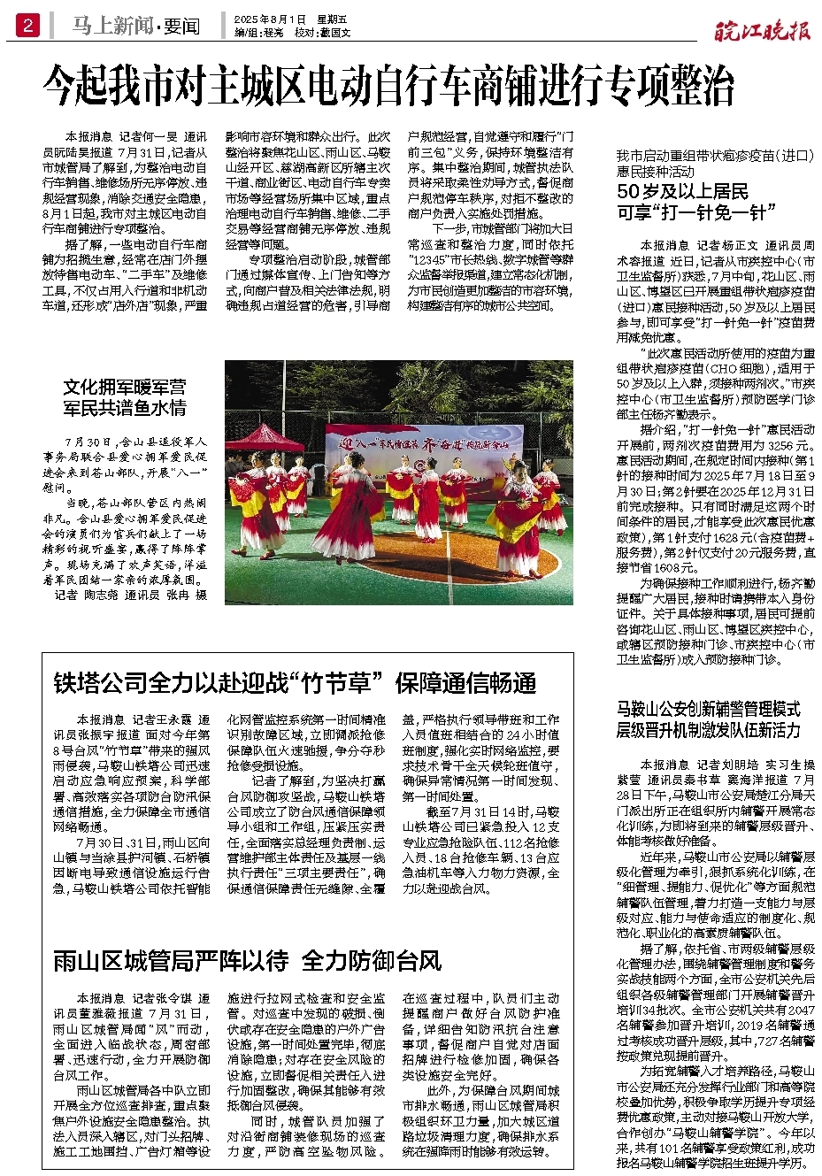 本报消息 记者杨正文 通讯员周术容报道 近日,记者从市疾控中心(市卫生监督所)获悉,7月中旬,花山区、雨山区、博望区已开展重组带状疱疹疫苗(进口)惠民接种活动,50岁及以上居民参与,即可享受“打一针免一针”疫苗费用减免优惠。