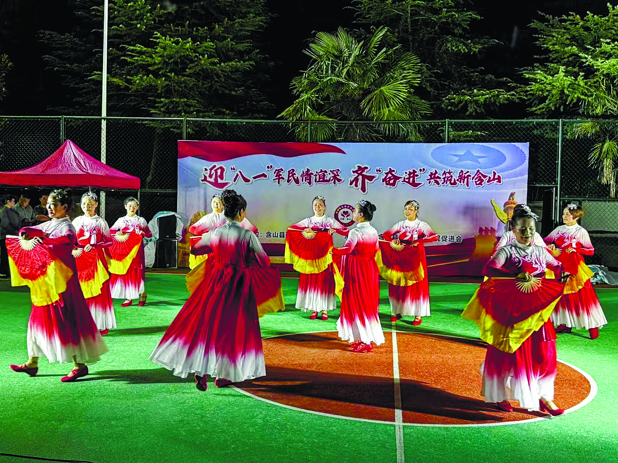 当晚,苍山部队营区内热闹非凡。含山县爱心拥军爱民促进会的演员们为官兵们献上了一场精彩的视听盛宴,赢得了阵阵掌声。现场充满了欢声笑语,洋溢着军民团结一家亲的浓厚氛围。