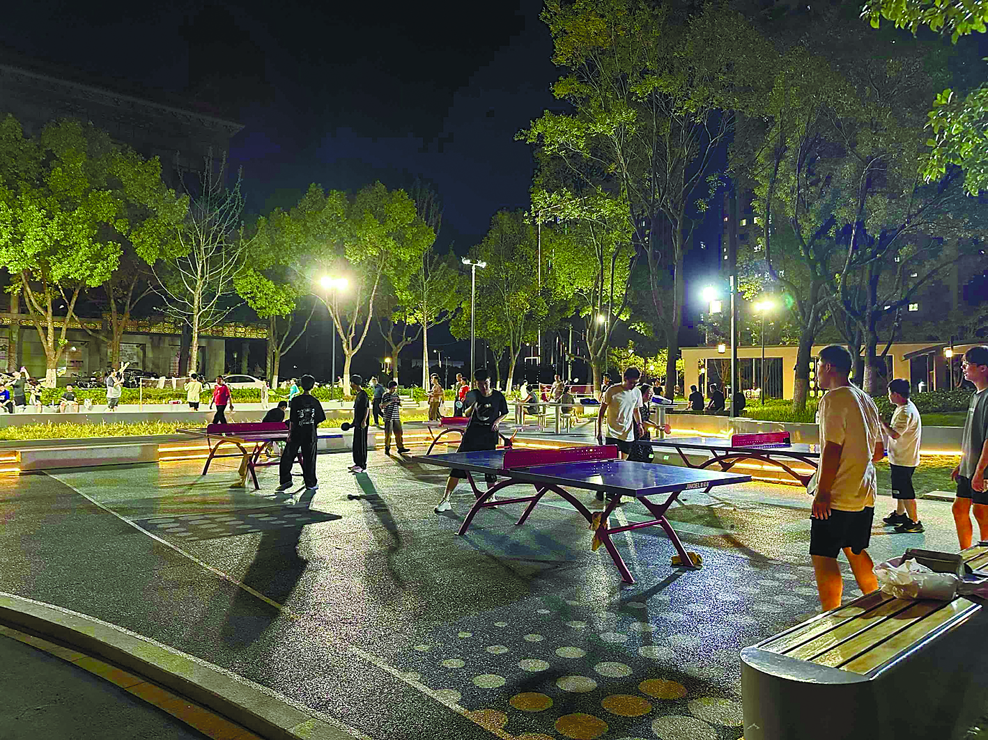 游园球台光不足 园林申请灯添明