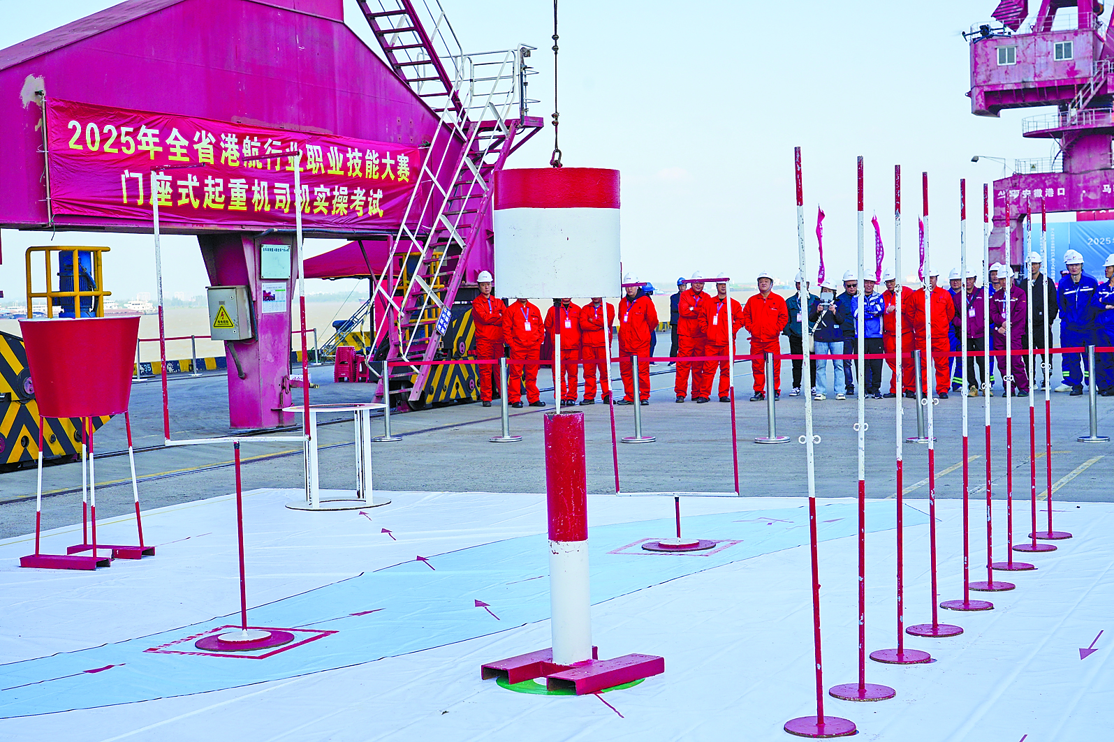 坐在离地近20米高的控制室内,操纵起重机,依次完成直线投篮、穿越U形环、窄道直行、吊桶穿针、打靶落座等操作……10月23日,安徽省职业技能竞赛——2025年全省港航行业职业技能大赛安徽港航集团马鞍山港赛区开赛。马鞍山港赛区具体承办门座式起重机司机工种比赛,57名选手通过层层选拔进入决赛。